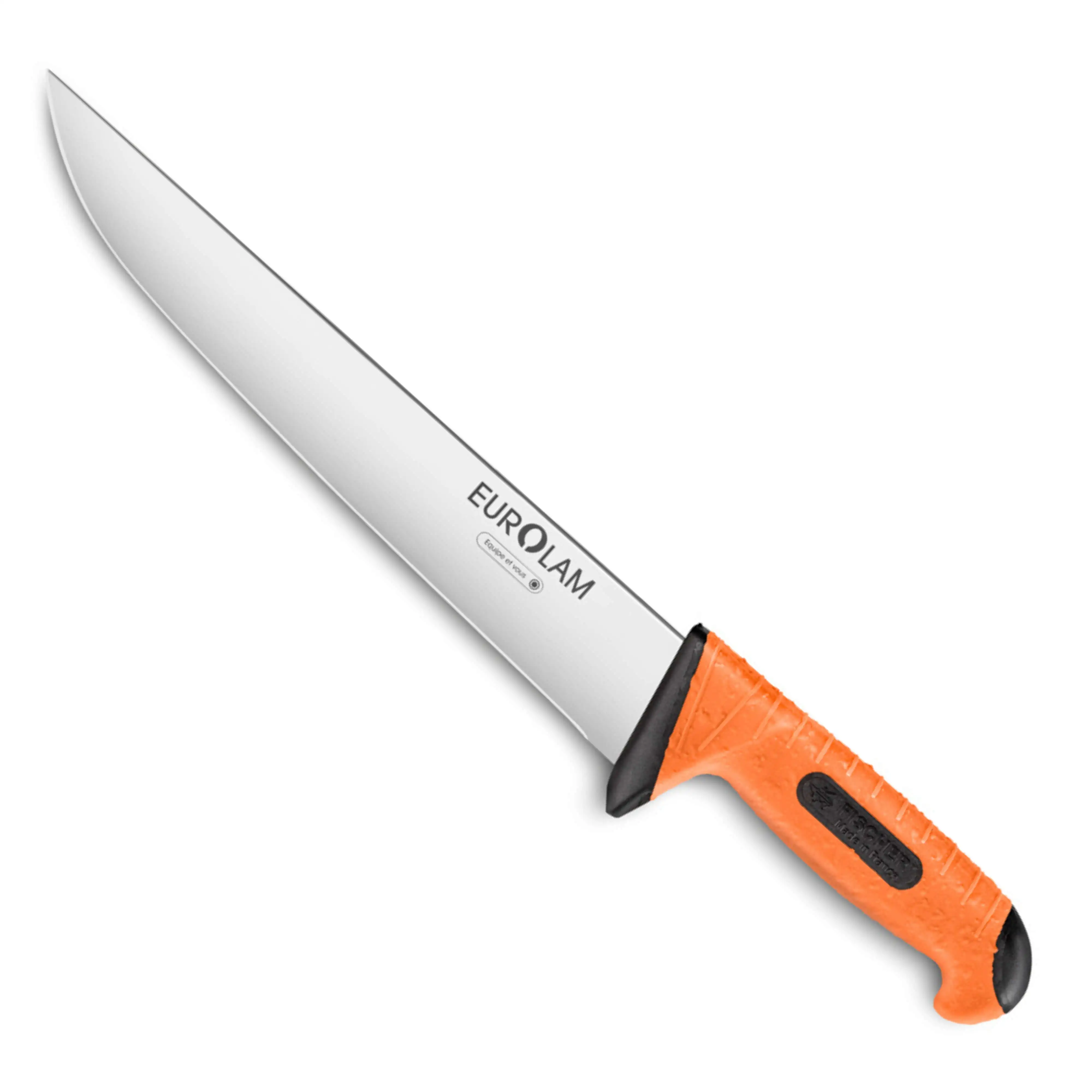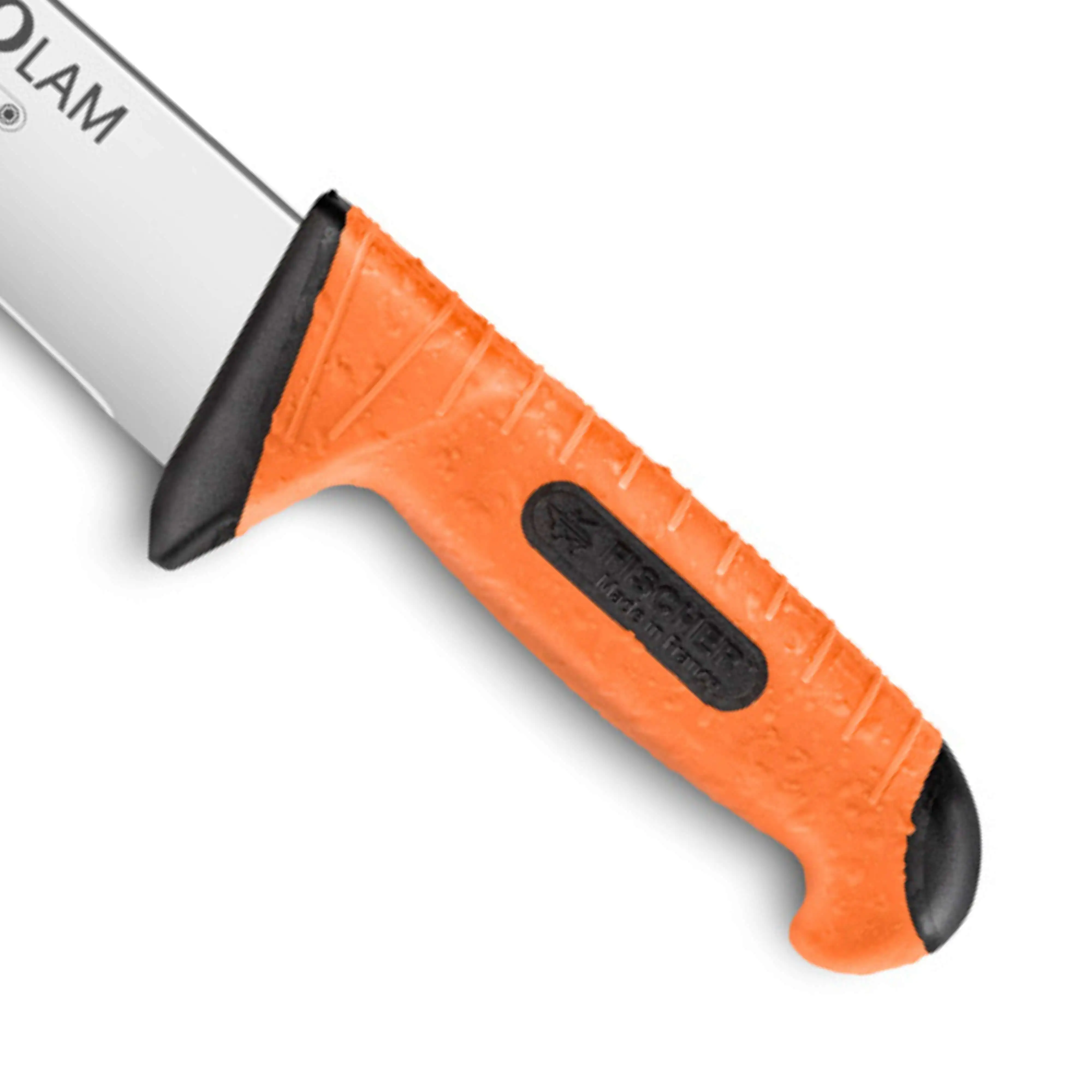 Ce couteau de boucher bi-matière Agua est fabriqué en France par Fischer-Bargoin, coutelier de référence reconnu pour son expertise auprès des professionnels des métiers de la viande.