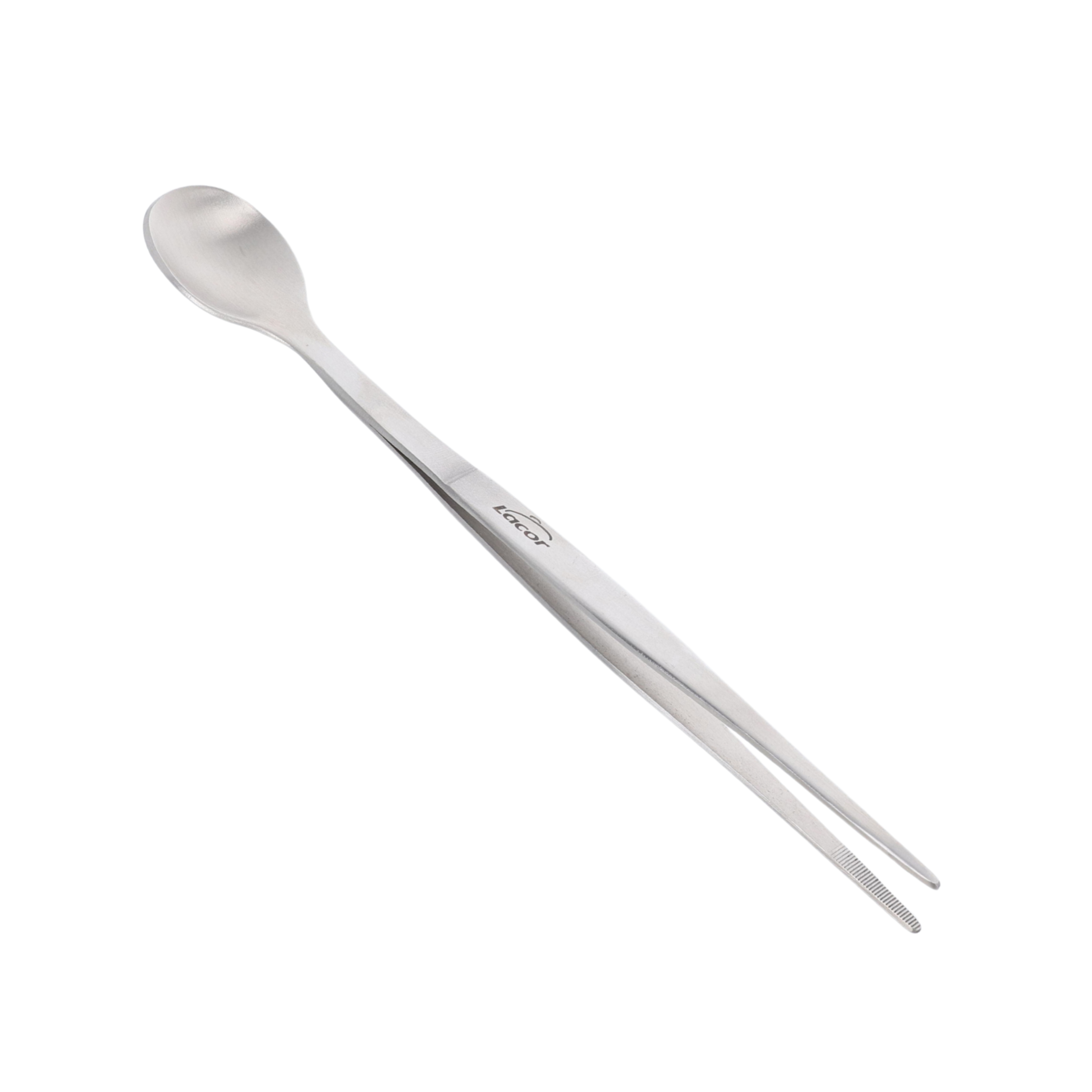 La pince à épiler de précision avec cuillère Lacor est l’outil malin qui réunit deux fonctions en un seul ustensile. Grâce à son double embout, vous pouvez à la fois dresser vos assiettes avec une précision chirurgicale et goûter vos sauces, bouillons ou assaisonnements en cours de préparation.
