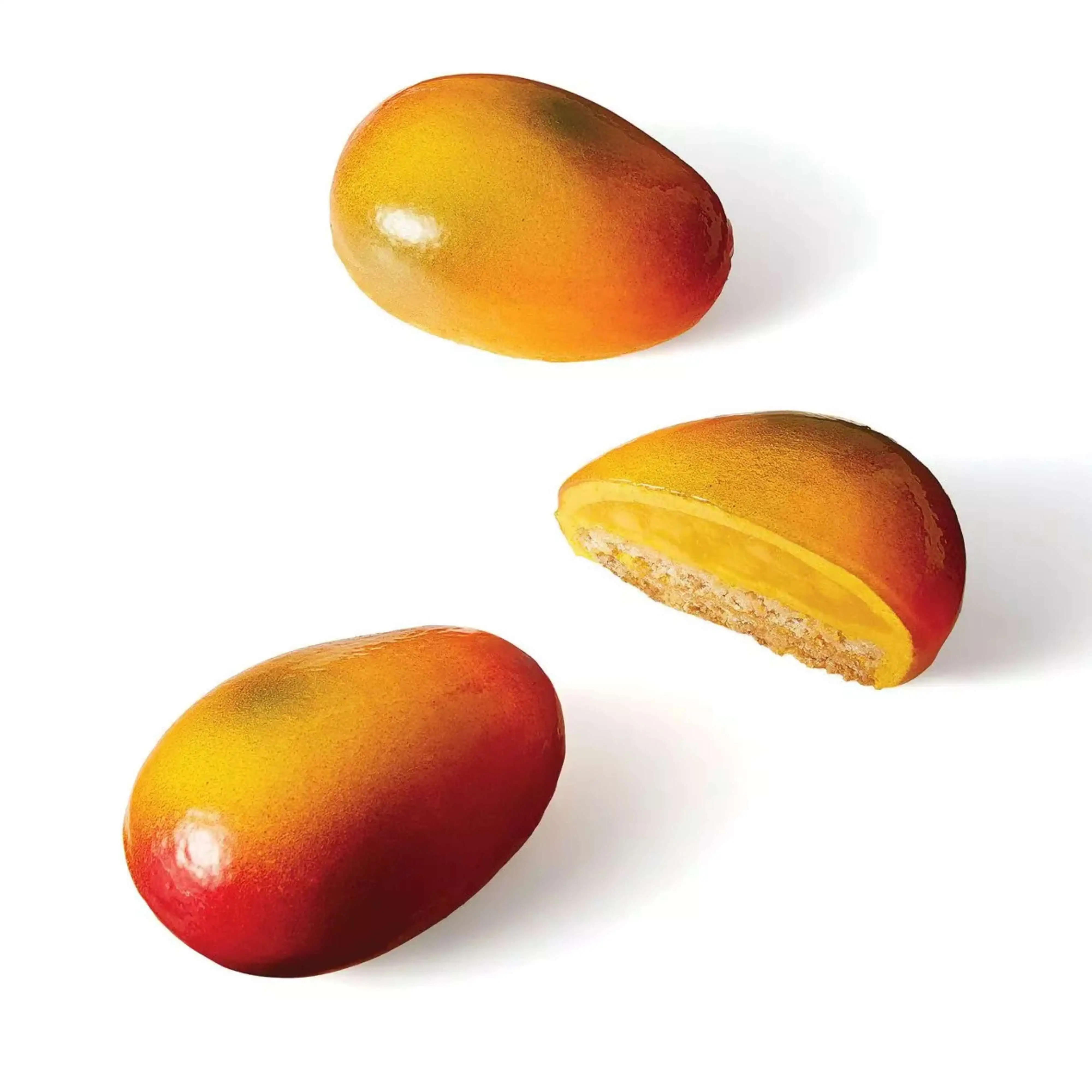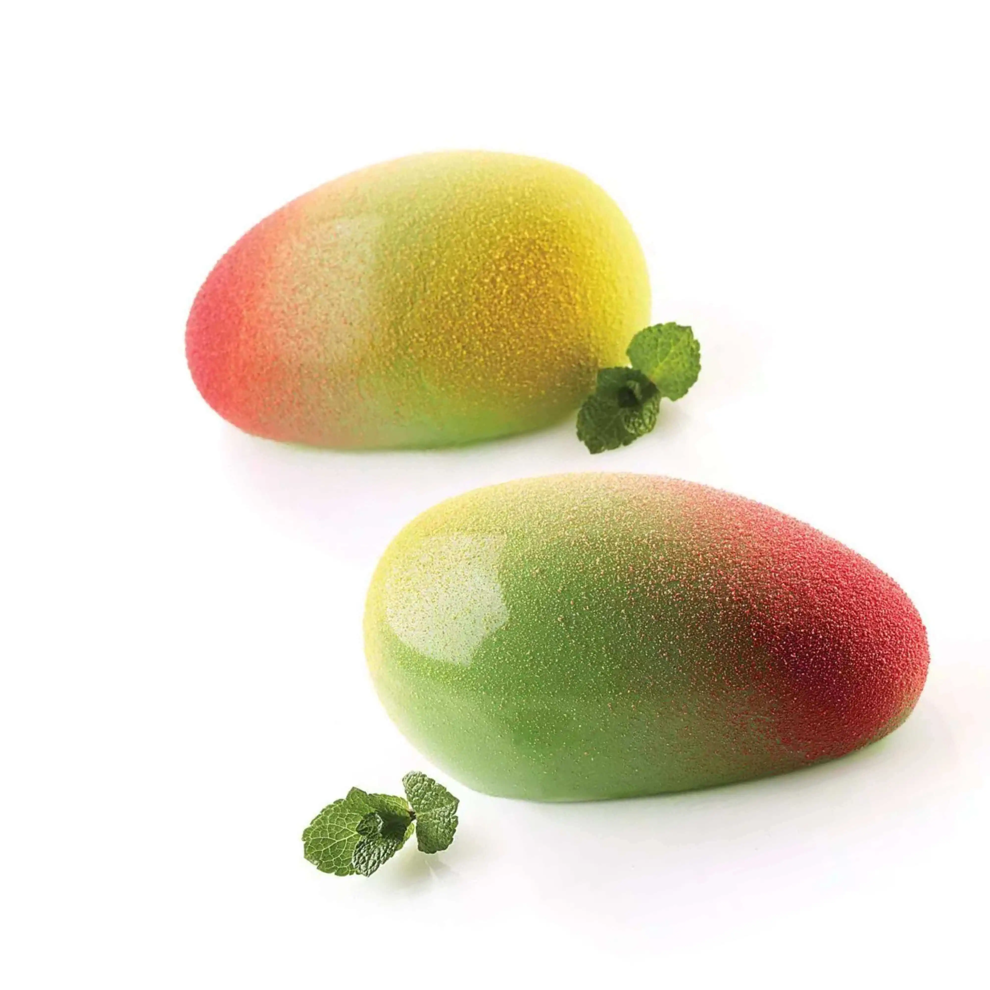 Ce moule trompe l’œil mangue est conçu pour reproduire fidèlement la forme douce et allongée du fruit, parfait pour des desserts à l’esthétique naturelle. Il permet de créer des entremets individuels inspirés des saveurs exotiques, très appréciés en pâtisserie moderne. Son design épuré met en valeur les glaçages colorés et les effets de textures, pour des créations visuellement impactantes en vitrine comme en restauration.