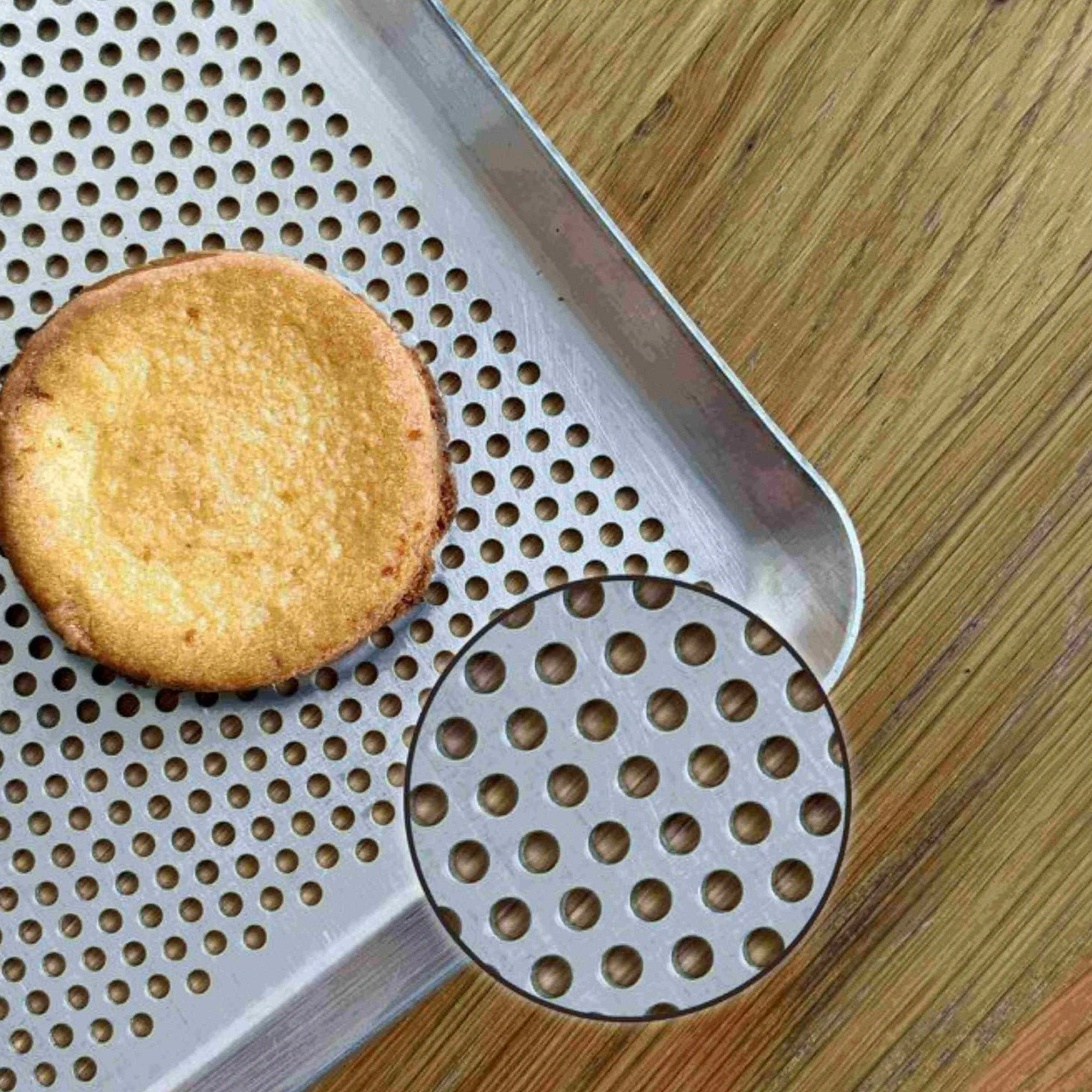 La plaque pâtisserie perforée favorise la circulation de l’air chaud dans le four et l’évacuation de l’humidité.