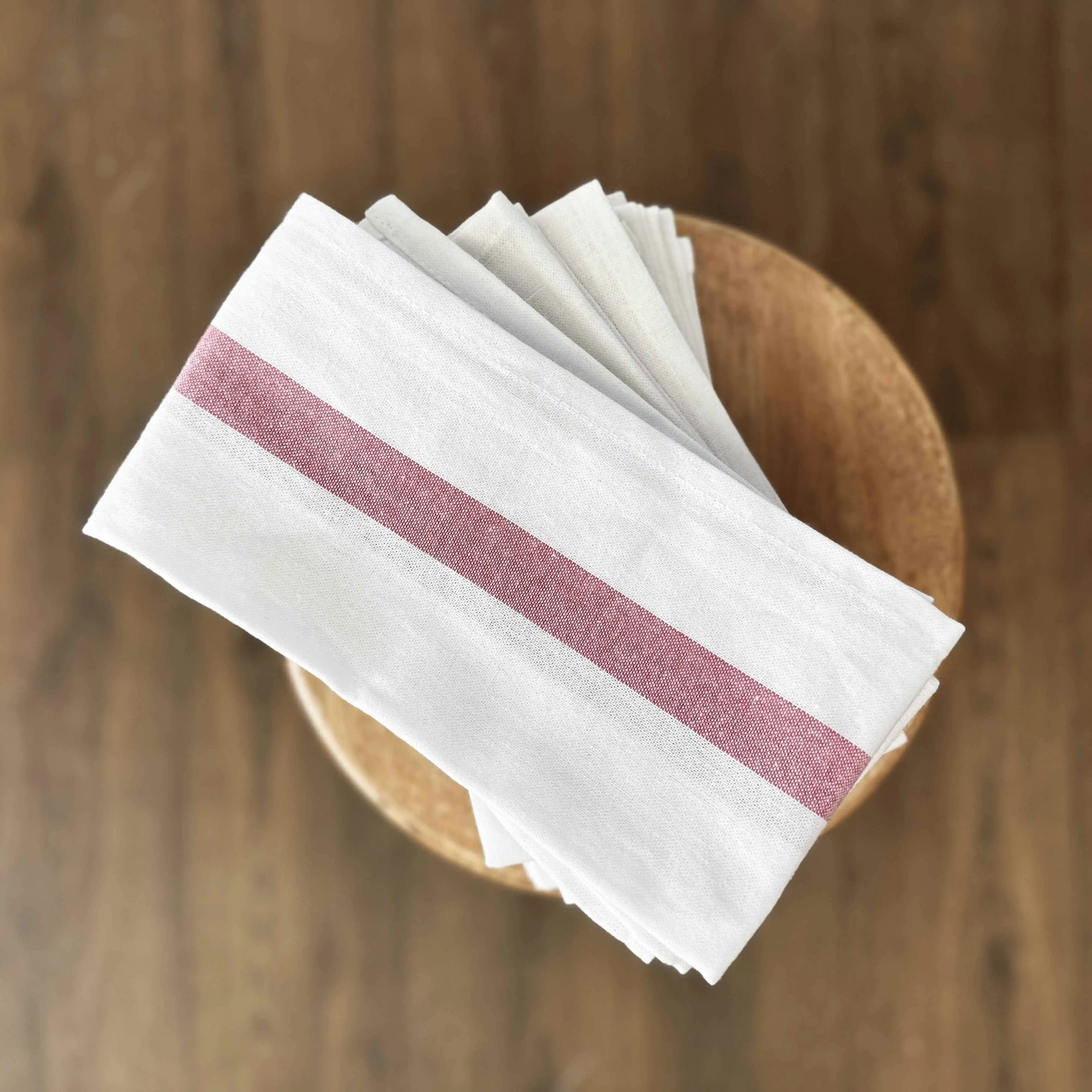 - Torchon blanc avec liteaux roses